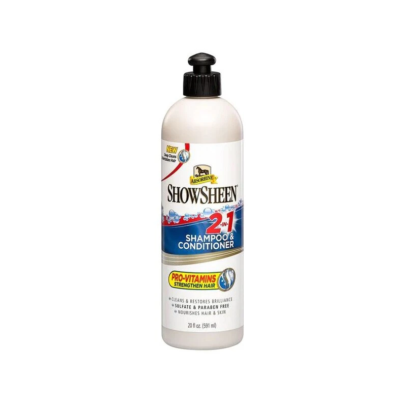Das 2 in 1 Pflegemittel für Pferde Showsheen Shampoo und Conditioner ist ein tolles reinigendes und pflegendes Mittel für Pferde. Das Showsheen Pflege- und Reinigungsshampoo ist PH- ausgeglichen und reinigt und pflegt Mähne, Schweif und Fell in einem Schritt! Das Showsheen 2-in-1 pflegt und entwirrt die Mähne und den Schweif! Das Showsheen Shampoo nährt und Pflegt das Mähnen- und Schweifhaar! Das Pferdeshampoo ist ohne Sulfate und Parabene hergestellt und eignet sich auch bestens für empfindliche Pferde!