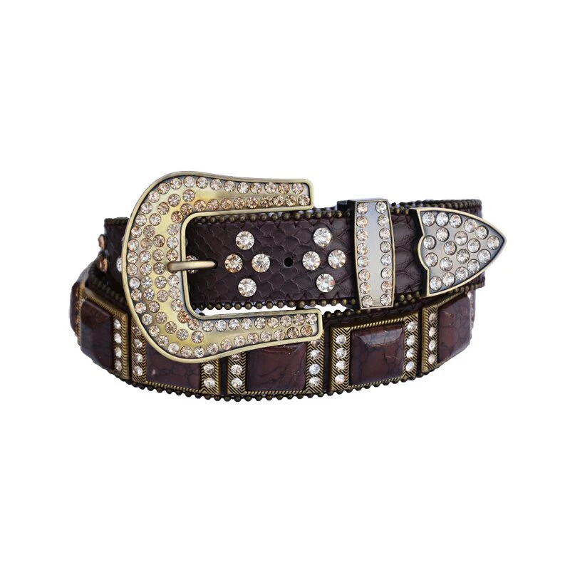 Schicker Ledergürtel für Damen mit tollen Verzierungen! Der edle Damengürtel hat tolle Steine mit Marmorierung angebracht und wird ebenfalls von glitzernden Strasssteinen verziert. Ein toller Ledergürtel mit Strass, der sich zu vielen Outfits kombinieren lässt.