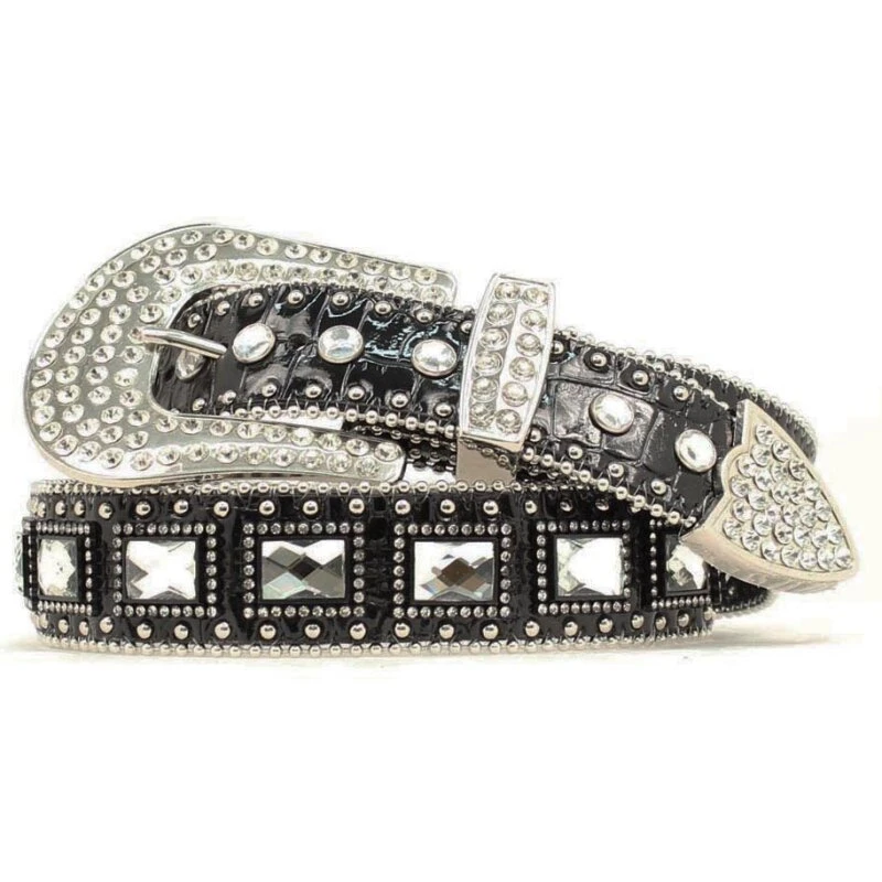Am Rand sind zusätzliche Nieten der Renner des edlen Strassgürtel.