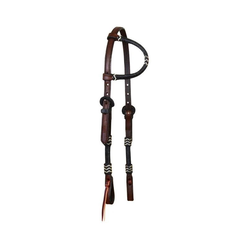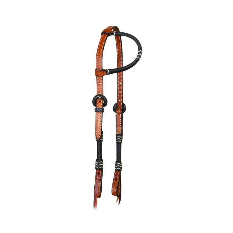 Dieses Leder Einohr Kopfstück hat tolle schwarze Akzente, die dem Kopfstück eine edle Optik verleihen. Der schwarze Earloop des Einohr Kopfstücks, die schwarzen Schnallen und die schwarzen Backenriemen machen das Western- Kopfstück zu einem wahren Schmuckstück