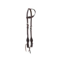 Einohr Westerntrense die sich im attraktiven Basket Look präsentiert. Handpunzierte Western-Trense aus hochwertigem US Leder. Das Gebiss wird an diesem Einohr-Kopfstück mit einem Lederriemen befestigt.