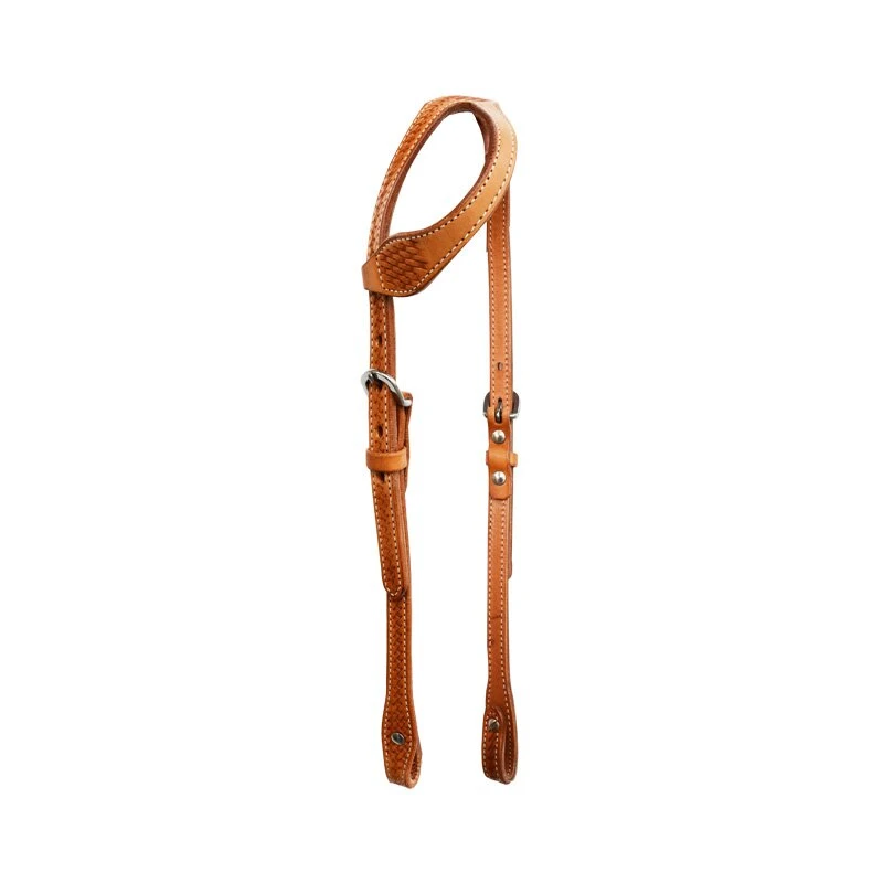 Sehr stilvolle Einohr-Westerntrense mit wunderschöner Basket Verzierung. Der Earloop des Western-Kopfstücks ist aus feinstem Leder gefertigt, ist fest angebracht und macht überall eine gute Figur.