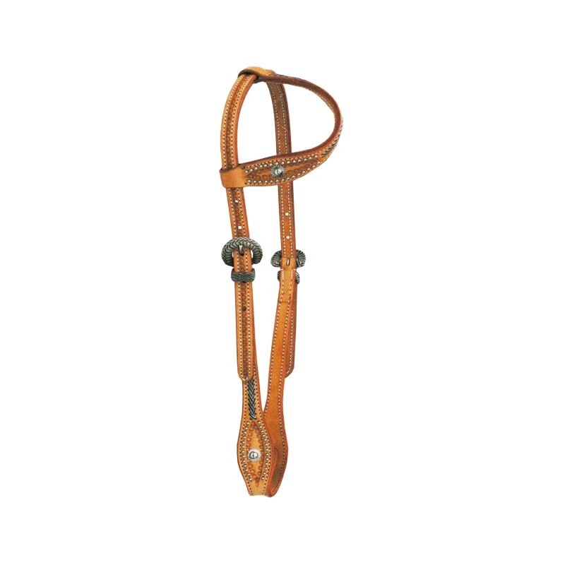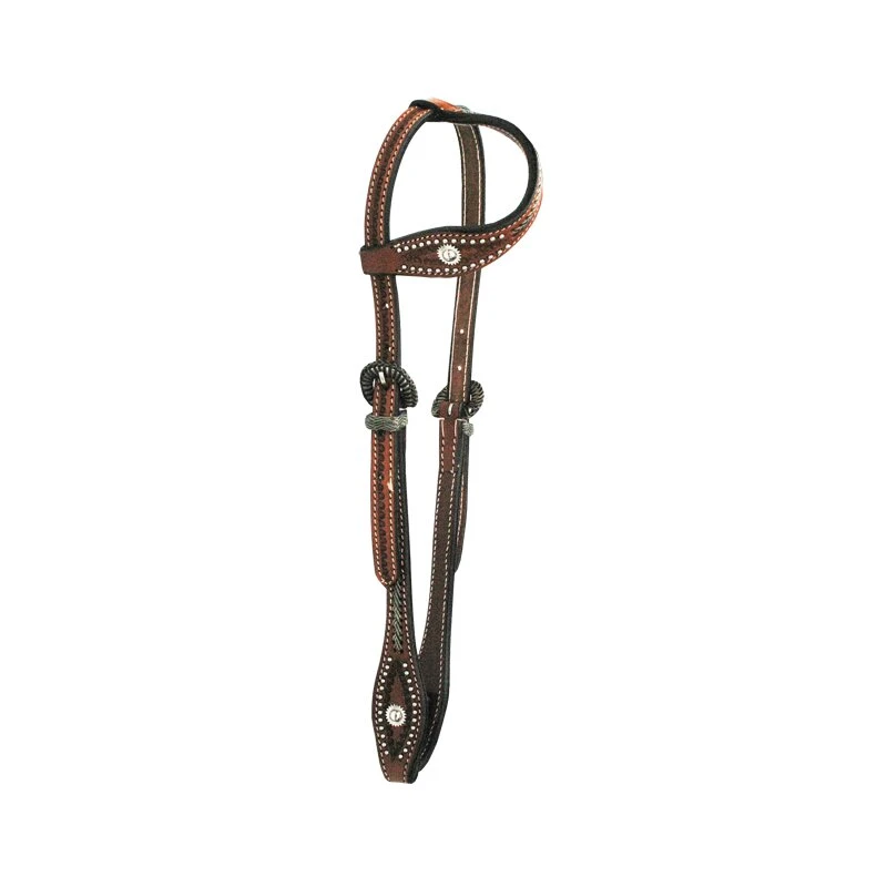 Einohr Westerntrense mit toller Farbkombi. Stilvoll und extravagantes Einohr Kopftsück mit heller Flechtung an Stirn-, und Backenriemen.