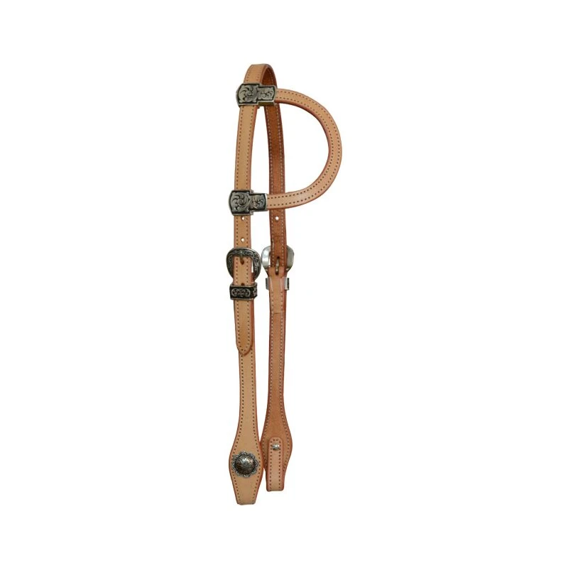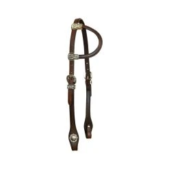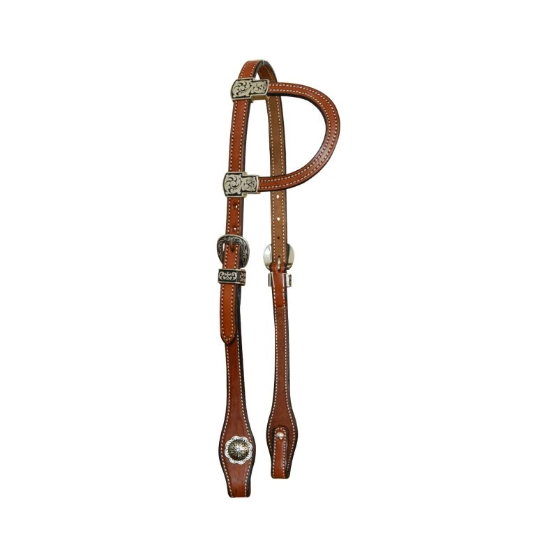 Super elegantes Einohr-Kopfstück für Training und Show! Dieses Western Einohr- Kopfstück besticht durch sein schlichtes und sehr edles Design! Die Einohrtrense hat einen schönen floralen Concha an den Backenstücken und eine bezaubernd schöne silberne, mit schwarz verzierte Schnalle. Die Enden der Earloops sind ebenfalls silber mit einem schönen Muster in schwarz verziert.