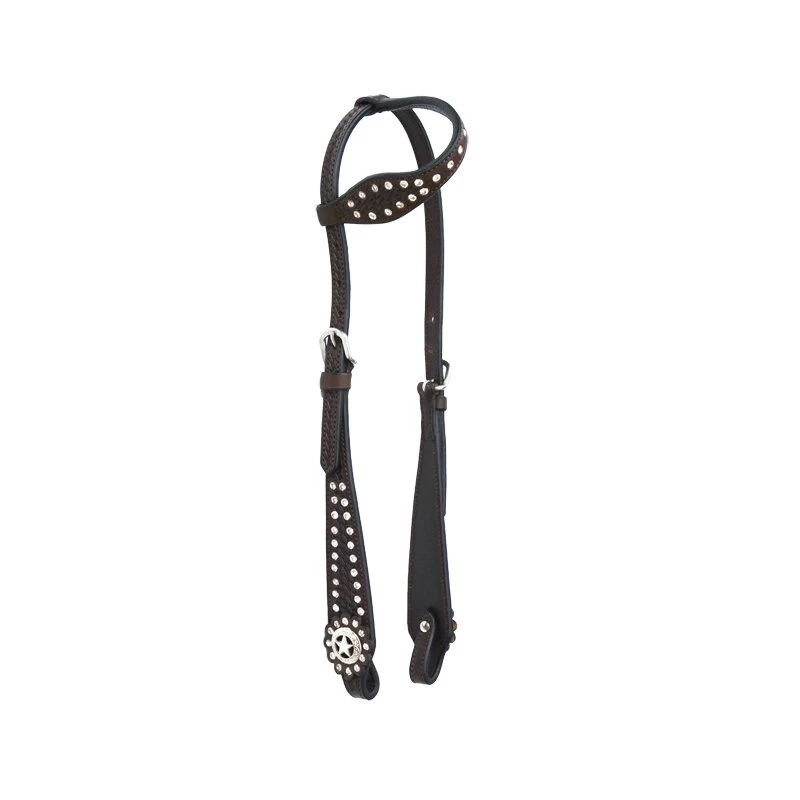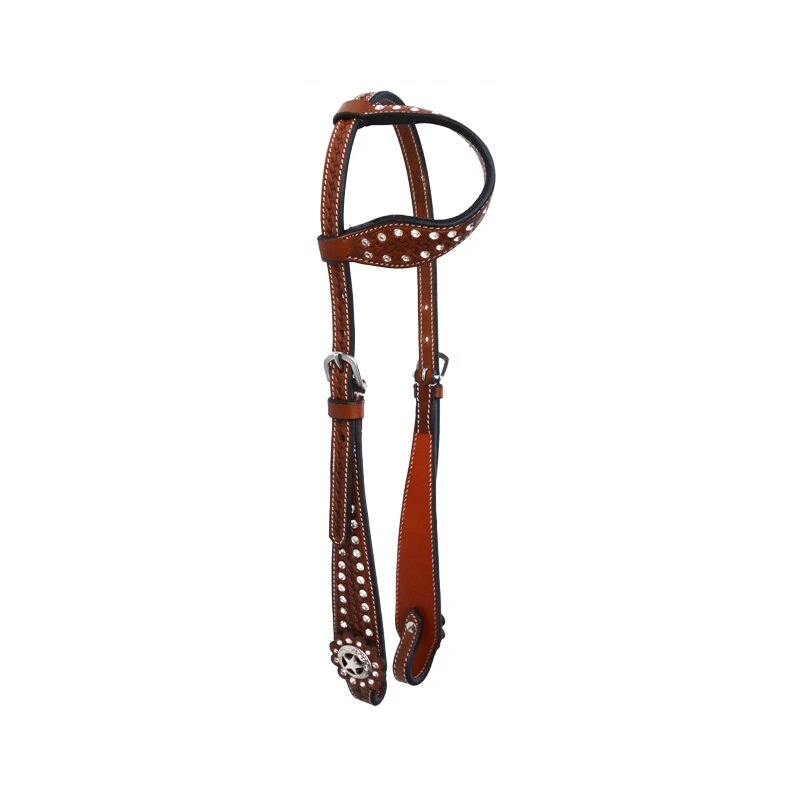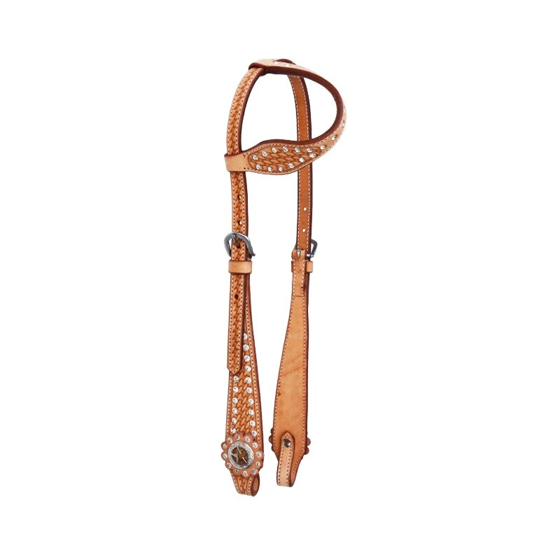 Stilvolle Einohr Western Trense mit schicker Strassverzierung und Sternenconcha.