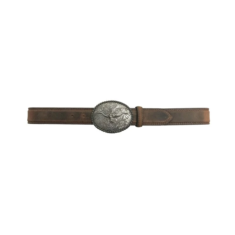 Dieser Ledergürtel im Wild-West-Stil ist ein wahrer Hingucker und das perfekte Accessoire für Cowboys und Western-Fans. Er ist aus dunklem Leder gefertigt. Der schicke Longhorn Buckle rundet das Design vollkommen ab! Die Gürtelschnalle mit Longhorn Motiv kann im Handumdrehen ausgetauscht werden. mit diesem Gürtel kann man sich nicht nur auf dem nächsten Western Event zeigen.
