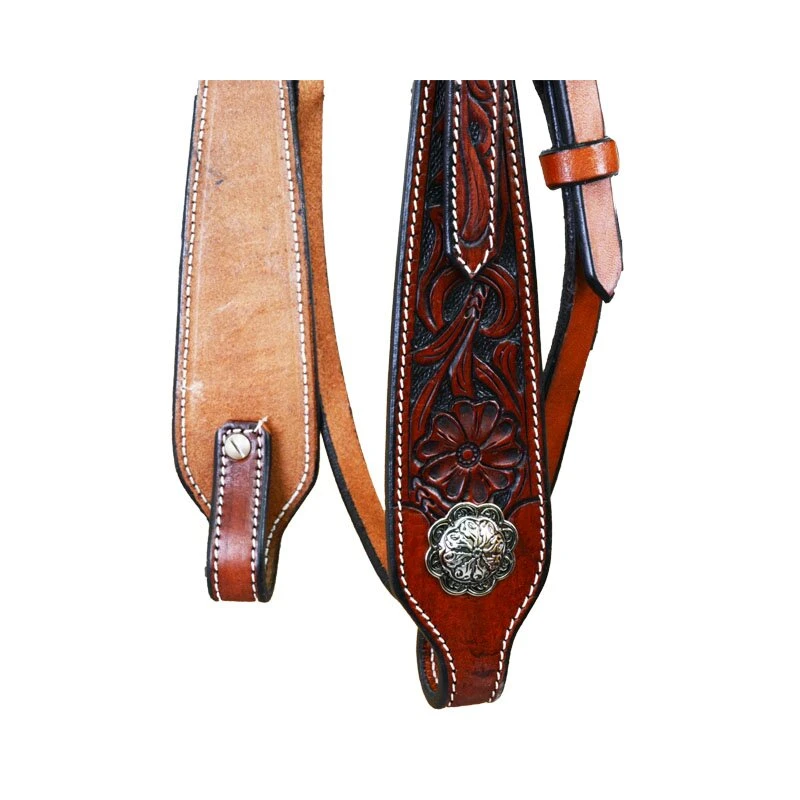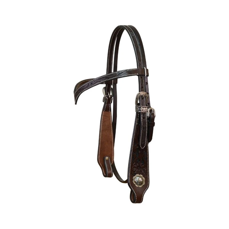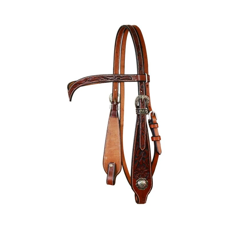 Außergewöhnliches Kopfstück mit V-Stirnband! Diese Westerntrense ist ein super edles Kopfstück für Westernpferde. Das Stirnband Kopfstück hat eine edle zweifarbige Blumenverzierung, welche sofort ins Auge sticht. Ebenfalls hat die Westerntrense edle Schnallen und schöne Conchas an den Backenstücken, welche die Trense nochmal optisch aufwerten.