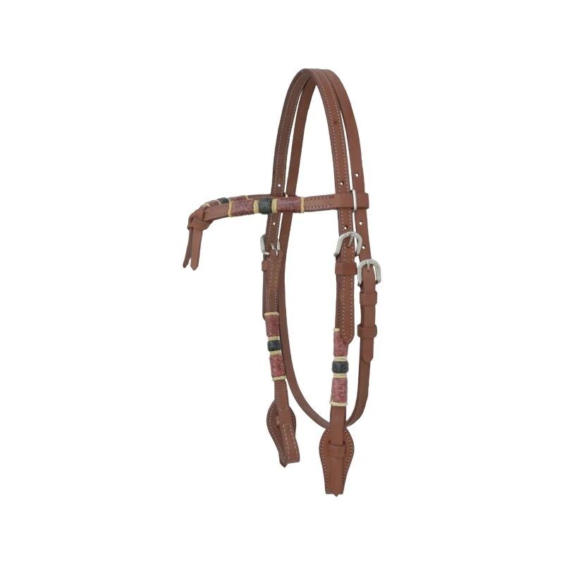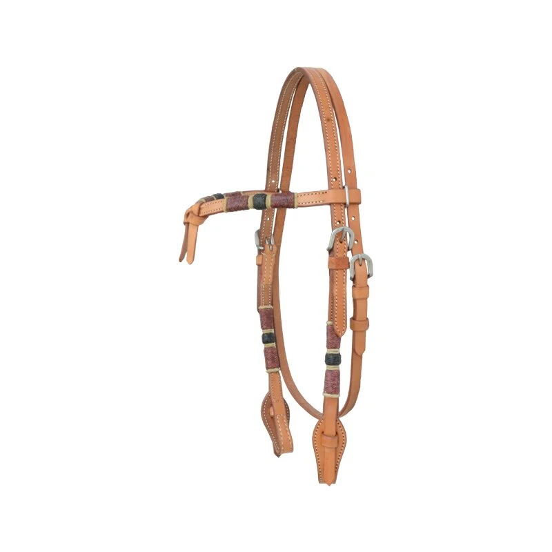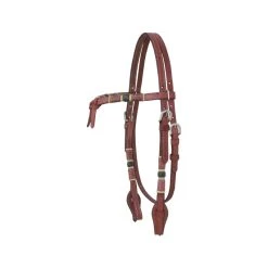 Grandioses Western-Kopfstück mit Knotenstirnband und sehr aufwendiger Rohhautflechtung! Diese Trense ist ein absolutes Schmuckstück! Die aufwendige Rohhaut Flechtung, als auch die Conchos machen die Westerntrense zu einem absoluten Hingucker! Das Westernkopfstück ist ein super schickes Stirnband-Kopfstück für Ihr Westernpferd! Die Westerntrense ist mit einem praktischen Schnellverschluss ausgestattet. Das Einhängen in den Gebissringen erfolgt bei diesem Westernzaum durch die an den Enden angebrachten Schnellverschlüsse ( Quick Change). Durch herausziehen der Lederlasche aus der Öse wird der Verschluss geöffnet und ist einfach wieder zu verschließen.
