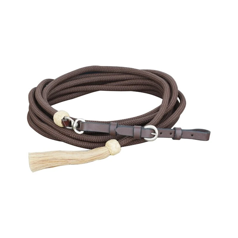 Showlonge in verschiedenen Farben. Die Show-Longe ist aus Nylon und hat am Ende ein Horshair Tassel angebracht. Die Longe wird mit einer Lederschlaufe befestigt. Die Nylon Longe hat auch noch Rohhaut Elemente angebracht, was die Longe optisch noch zusätzlich aufwertet. Die schicke Longe ist ca. 7m lang.