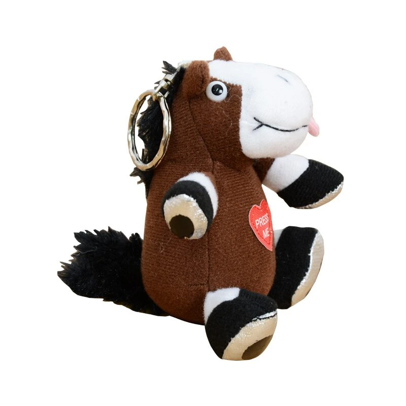 Plüschtier Pferdchen mit Soundeffect. Der Crazy Horse Schlüsselanhänger ist mit seinem unverkennbaren Sound ein Schlüsselanhänger den nicht jeder hat. Wenn man das Sound-Stofftier drückt fängt es unkontrolliert zu lachen an. Das verrückte Pferd ist eine lustige Geschenkidee für Klein&Groß. Mit diesem Pferde-Schlüsselanhänger ist gute Laune garantiert, wenn man den Sound auslöst.