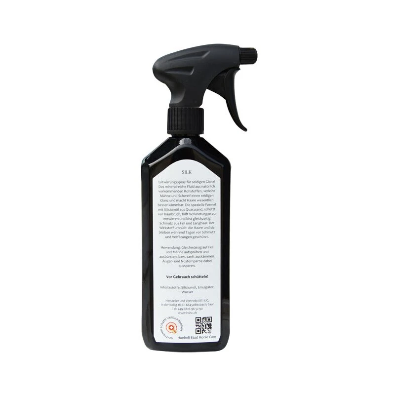 Hübeli Stud Horse Care Silk Schweif und Mähnenspray in der praktischen 750 ml. Sprayflasche oder im günstigeren 2 Liter Nachfüllkanister.