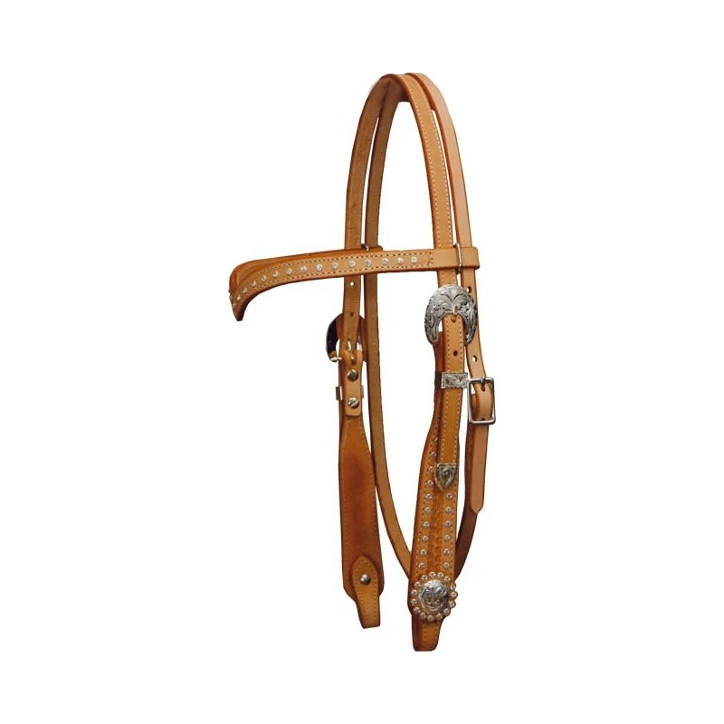 Die ultimative Westerntrense für einen glänzenden, glamourösen Auftritt! Diese umwerfende handgefertigte Westerntrense hat ein wunderschönes Design! Die Trense ist am V-Stirnriemen mit edlen Swarovski Steinen dekoriert. Auch am Backenstück hat dieses Westernkopfstück glänzende Swarovski Steine angebracht in Kombination mit einer schönen Basket Punzierung.