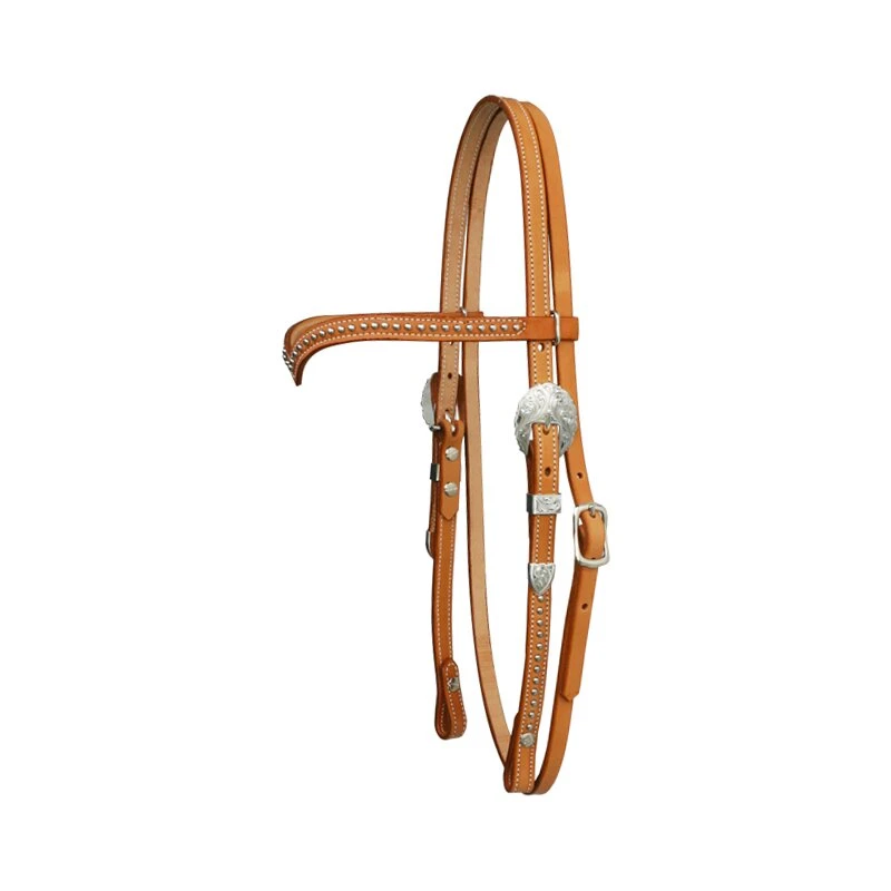 Schöne Turnier- und Show Westerntrense mit edlen Dots. Freizeit- aber auch Turnierreiter sind mit diesem Kopfstück bestens bedient. Wer auf der suche nach einer besonderen, hochqualitativen Trense ist, kommt an dieser handgefertigten Westerntrense nicht vorbei! Der Stirnriemen und das Backenstück der Westerntrense sind mit tollen Dots besetzt und sorgen für eine tolle Optik.