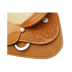 Überzeugen kann dieser Reining Sattel mit toller Blumen-Punzierung, Silber Conchas und bequemen Wildledersitz.