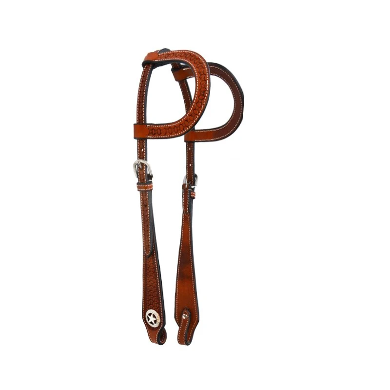 Ansprechende Zweiohr-Westerntrense mit einer wunderschönen und aufwändigen Sunshine-Punzierung und schicken Sternenconchas. Mit diesem Zweiohr Kopfstück kann man sich überall sehen lassen. Dieses schöne Zweiohr Kopfstück glänzt sowohl beim täglichen Training als auch auf dem Westernturnier!